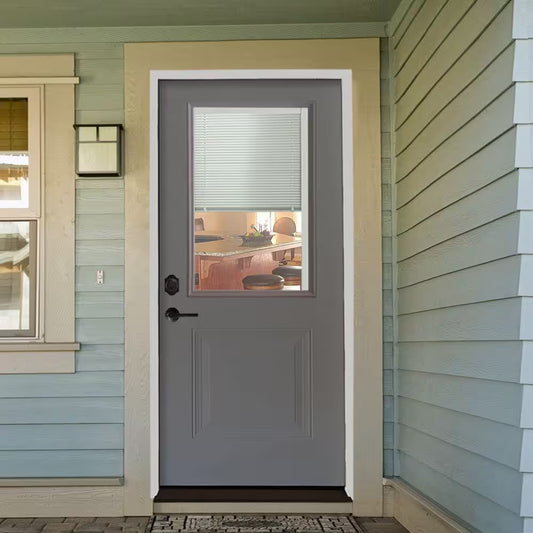 36 In. X 80 In. Element Series 1-Panel 1/2 Lite Mini-Blind White Primed Steel Prehung Front Door