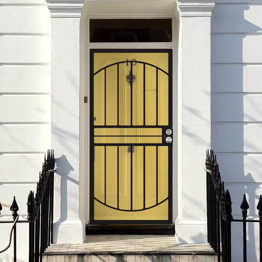 36 In. X 80 In. Arcada Black Surface Mount Outswing Steel Security Door with Expanded Metal Screen