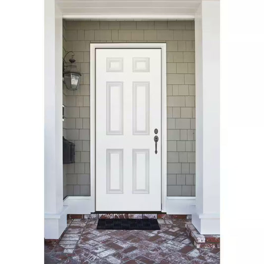 30 In. X 80 In. Element Series 6-Panel White Primed Steel Prehung Front Door Left-Hand Inswing wi...